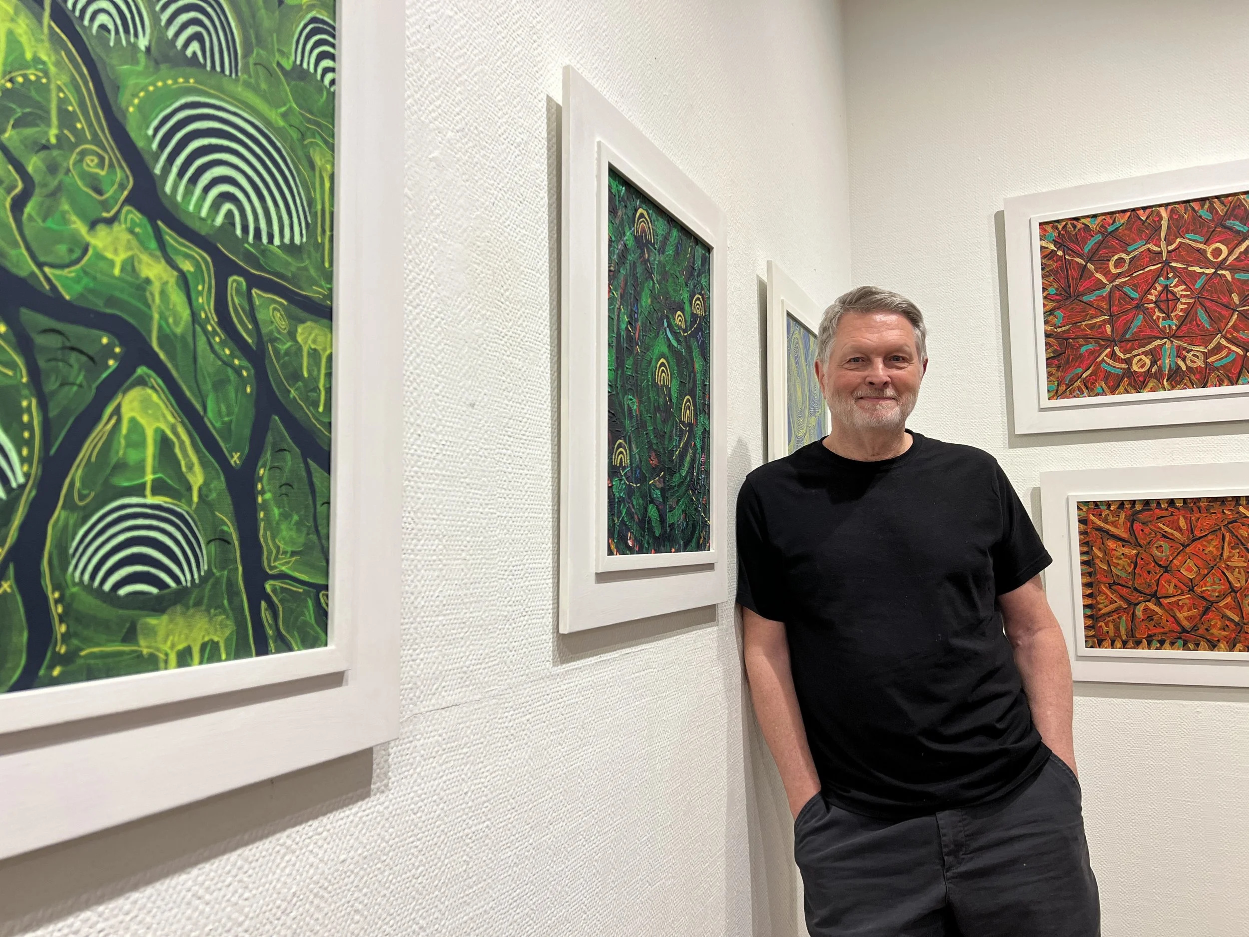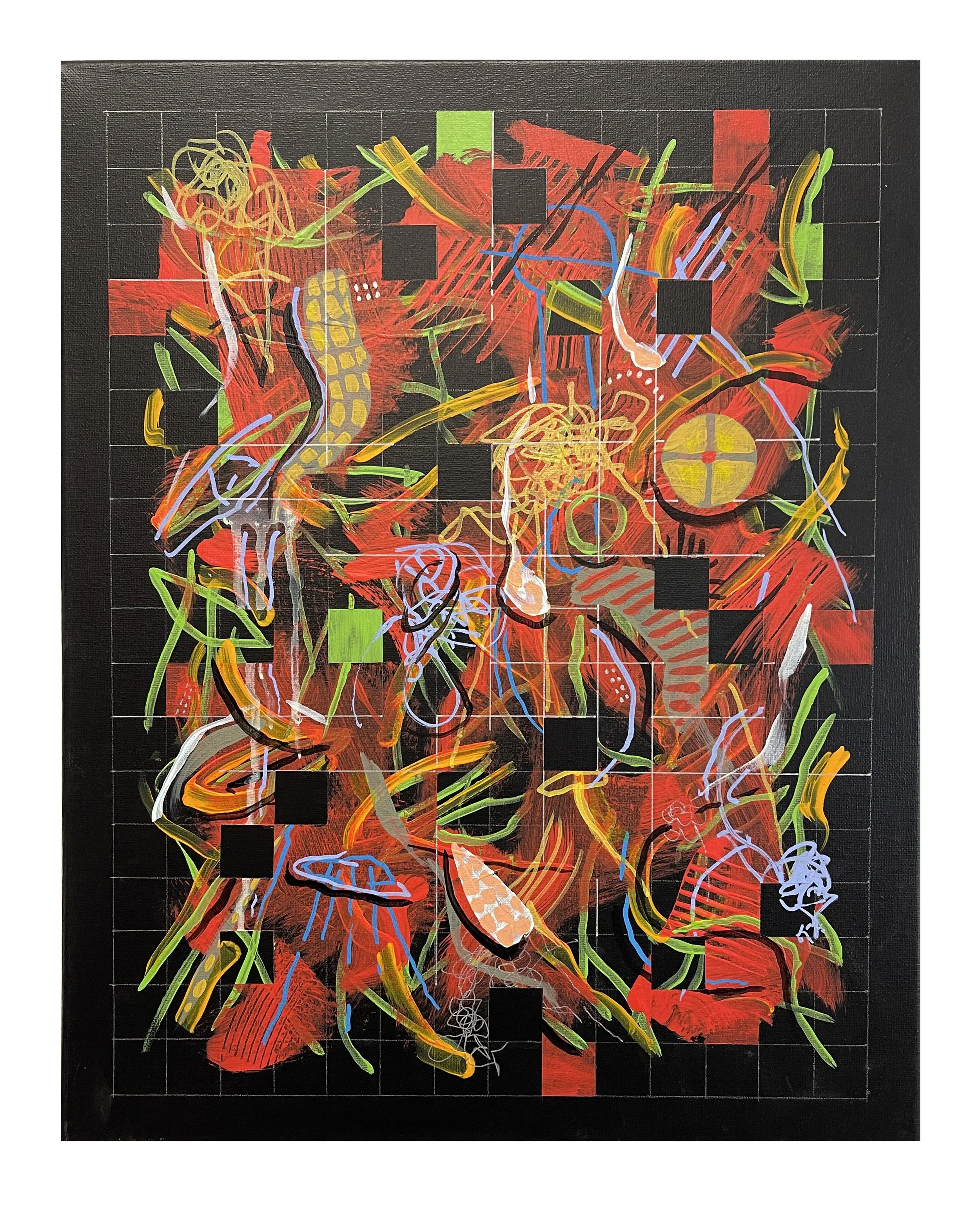 Coming Home is the first exhibition of paintings by John Foster in over 30 years. A fine arts teacher of painting and drawing at John Burroughs School in St. Louis for 11 years, John left in 1987 to pursue his longtime interest in graphic design. The paintings on exhibit in the Bonsack Gallery represented nearly 4 years of intensive work (2020-2024) and showcased several new directions for Foster. The new paintings build upon his longtime focus of pattern, line, grids, letterforms, repetitive shapes and surface tension. Numerous pieces in the exhibit have been inspired by topographical maps, engineering diagrams, river tributaries, typography, and cryptic codes. Foster's lifetime study of fine art, design and outsider art has created unexpected connections between disciplines.